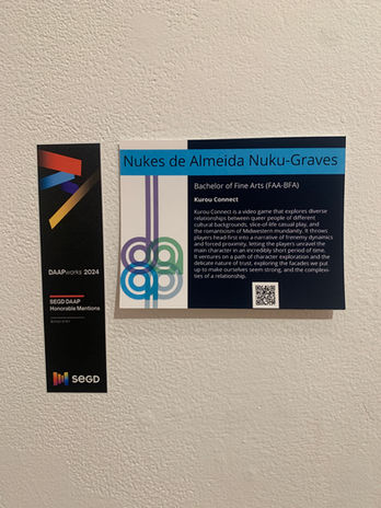 on april 23, 2024, daapworks began. for daapworks, i put up an altered version of the kurou connect installation as well as uploaded version 1.0.1 online for play. during daapworks, kurou connect was given an segd daap honorable mention award.